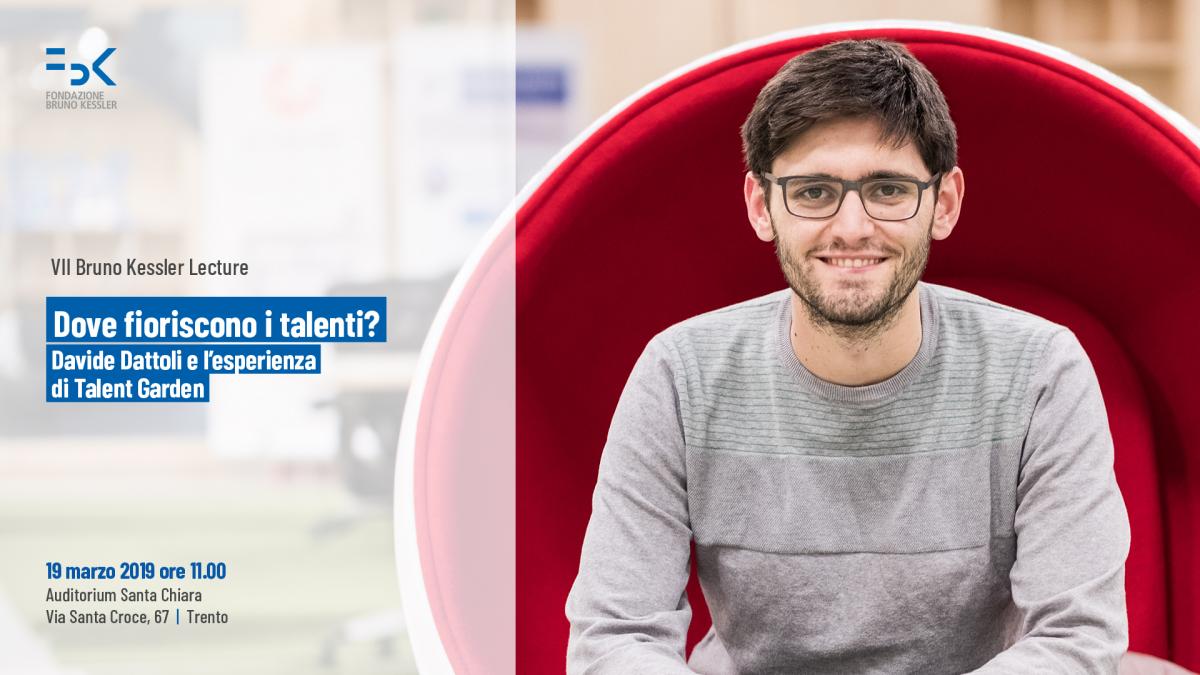 Data:Dove fioriscono i talenti? Se ne parla martedì 19 marzo a partire dalle ore 11 all’Auditorium Santa Chiara di Trento alla VII Bruno Kessler Lecture con il fondatore di Talent Garden Davide Dattoli.