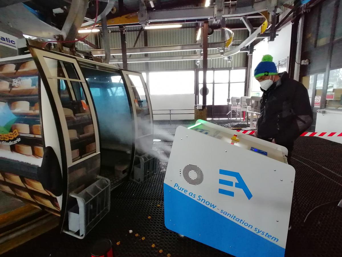 “Pure as snow” è la macchina compatta in grado di sanificare, senza tossicità e in meno di due secondi, gli ambienti delle funivie e cabinovie.