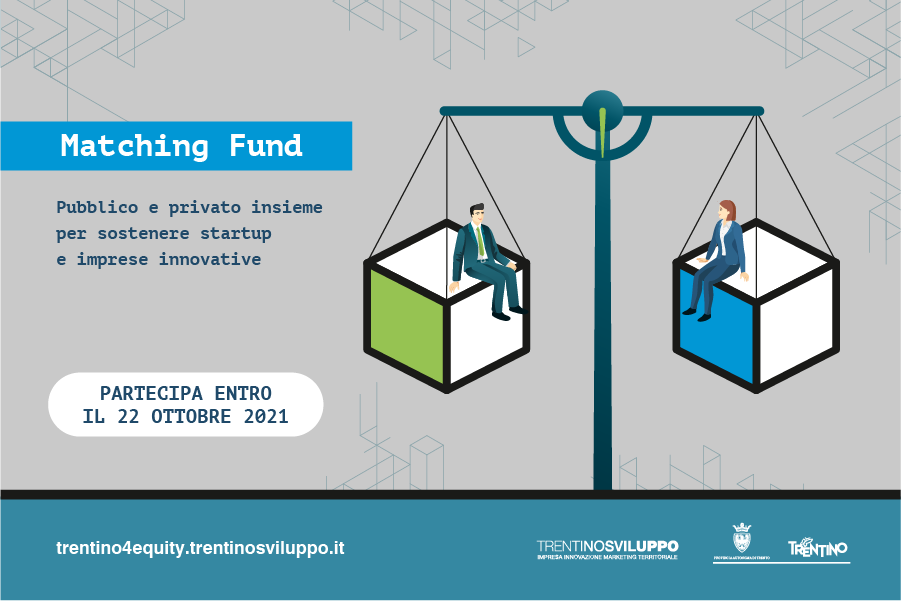 Il bando Matching Fund è pubblicato sul sito trentino4equity.trentinosviluppo.it insieme all'avviso pubblico e a tutte le informazioni per partecipare.
